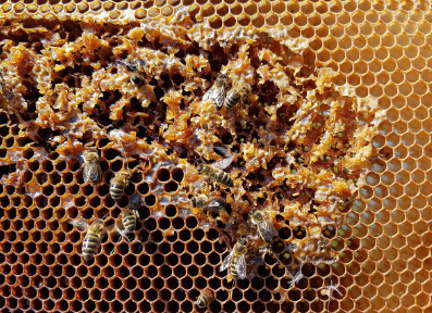 Comb Honey: Natural honey sealed in wax cells for full sensory experience.